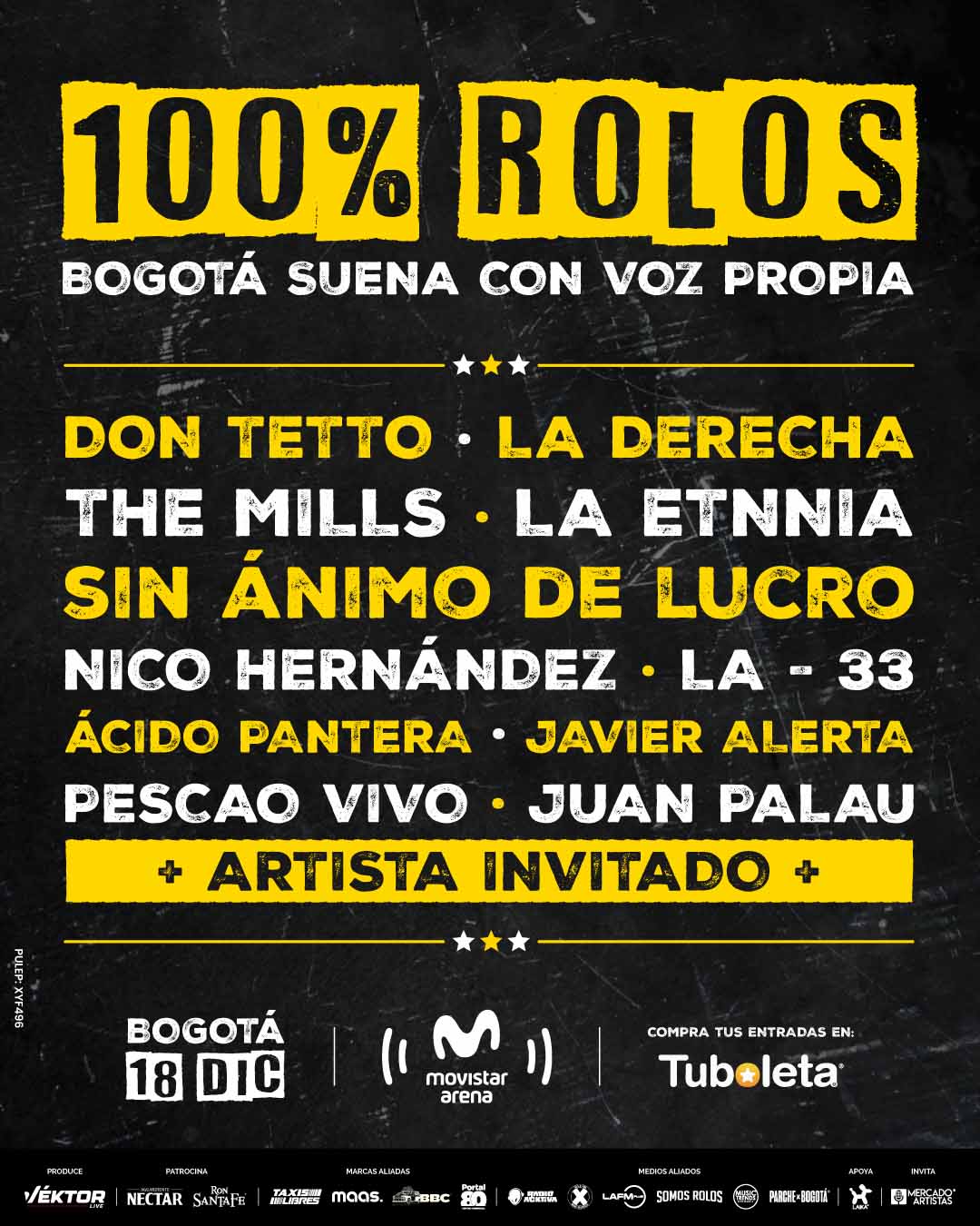 Bogotá, el 18 de diciembre de 2025 la capital por fin tendrá un escenario que hable su idioma musical. Llega “100% ROLOS”, el primer concierto creado exclusivamente para celebrar el orgullo de ser bogotano a través de su diversidad sonora: rock, salsa, rap, alternativo y más. Un evento sin precedentes que reunirá a las bandas más emblemáticas de la ciudad en un mismo escenario.