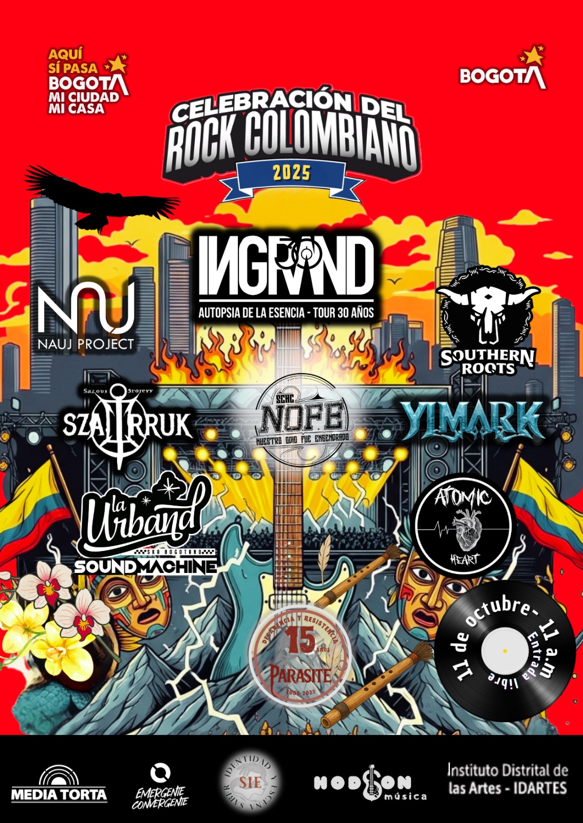 Este sábado 11 de octubre, a partir de las 11:00 a.m., la Media Torta de Bogotá vibrará con una jornada que celebra lo que somos como país y como movimiento. Bajo el nombre “Raíz y Convergencia”, esta fecha especial reunirá a proyectos que representan la diversidad sonora, la memoria y la evolución del rock colombiano. Las orquídeas, el cóndor, la cordillera y la bandera se funden con el poder del amplificador y la energía de los riffs. Porque el rock, el metal, el indie y la música tradicional son también Colombia. En esta jornada, el público vivirá un recorrido sonoro que une generaciones, estilos y territorios: •