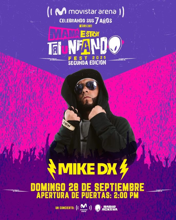 Este domingo desde las 2:00 p.m., el Movistar Arena se llenará de sonidos, historias y emoción con la segunda edición del festival “Mamá, Estoy Triunfando”, una poderosa iniciativa de Radioacktiva que celebra el talento, la diversidad y la fuerza de una escena musical que no para de crecer. Y entre los artistas que darán vida a esta jornada, nos llena de orgullo anunciar la participación de MIKE DX y SOULTERRA, dos propuestas distintas pero profundamente conectadas por su impacto, su autenticidad y su voz transformadora.