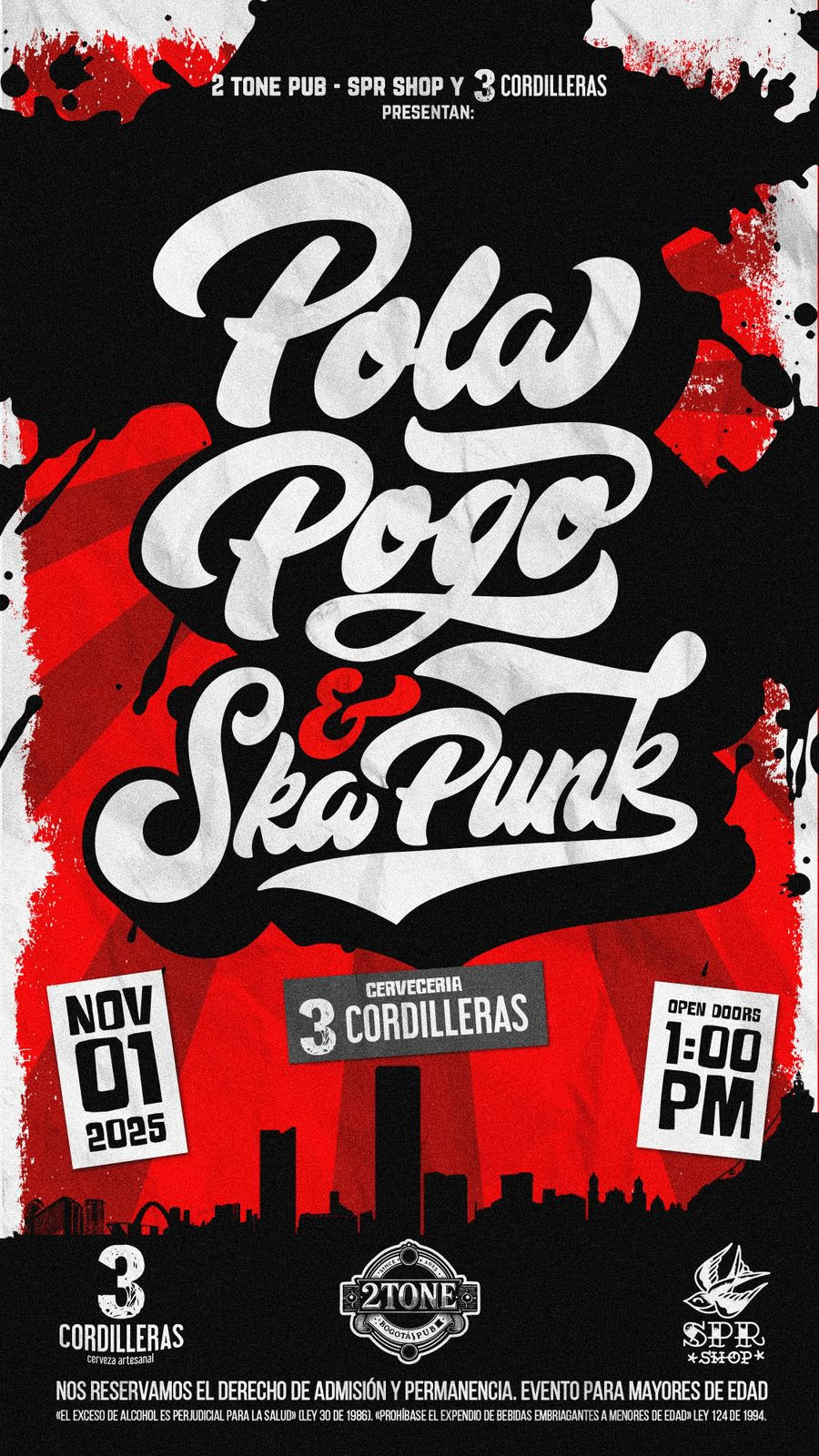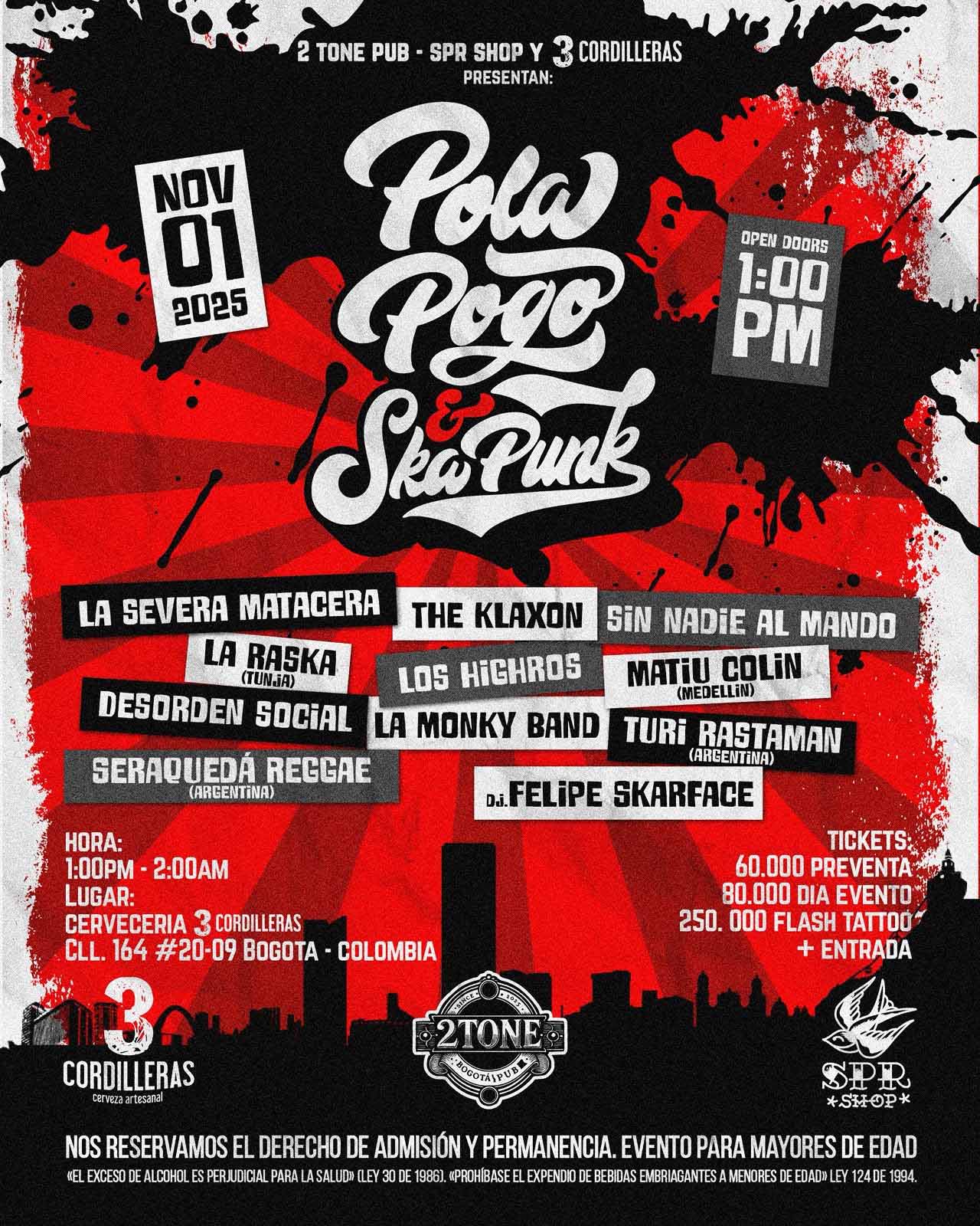 Organizado por 2 Tone Pub, SPR Shop y 3 Cordilleras Cervecería Artesanal, el festival nace con una intención clara: fortalecer la escena alternativa nacional y posicionar un espacio donde convivan la música, la cultura urbana y la producción local. ‘Pola Pogo & Ska-Punk’ será una jornada que reivindica el espíritu del hazlo tú mismo, la cercanía entre artistas y público, y la conexión entre los sonidos de Jamaica y las calles de Bogotá.