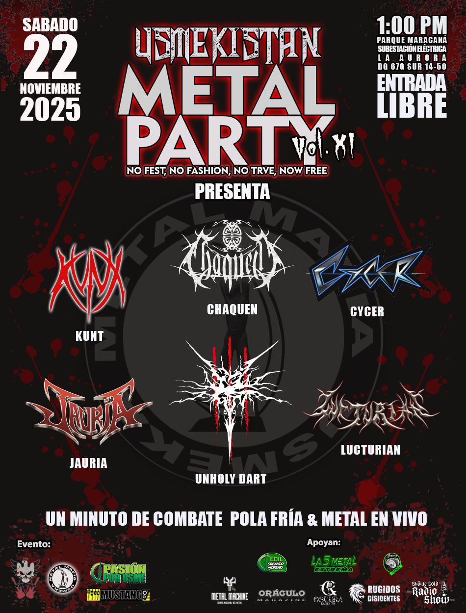 En esta versión se presentarán las agrupaciones usmekas Unholy Dart (Blackened Metal), Kunt (Thrash Black Metal), Cycer (Heavy Metal), Jauria (Spedd Metal), Lucturian (Death Metal) y la banda invitada Chaquen (Death Black Metal).